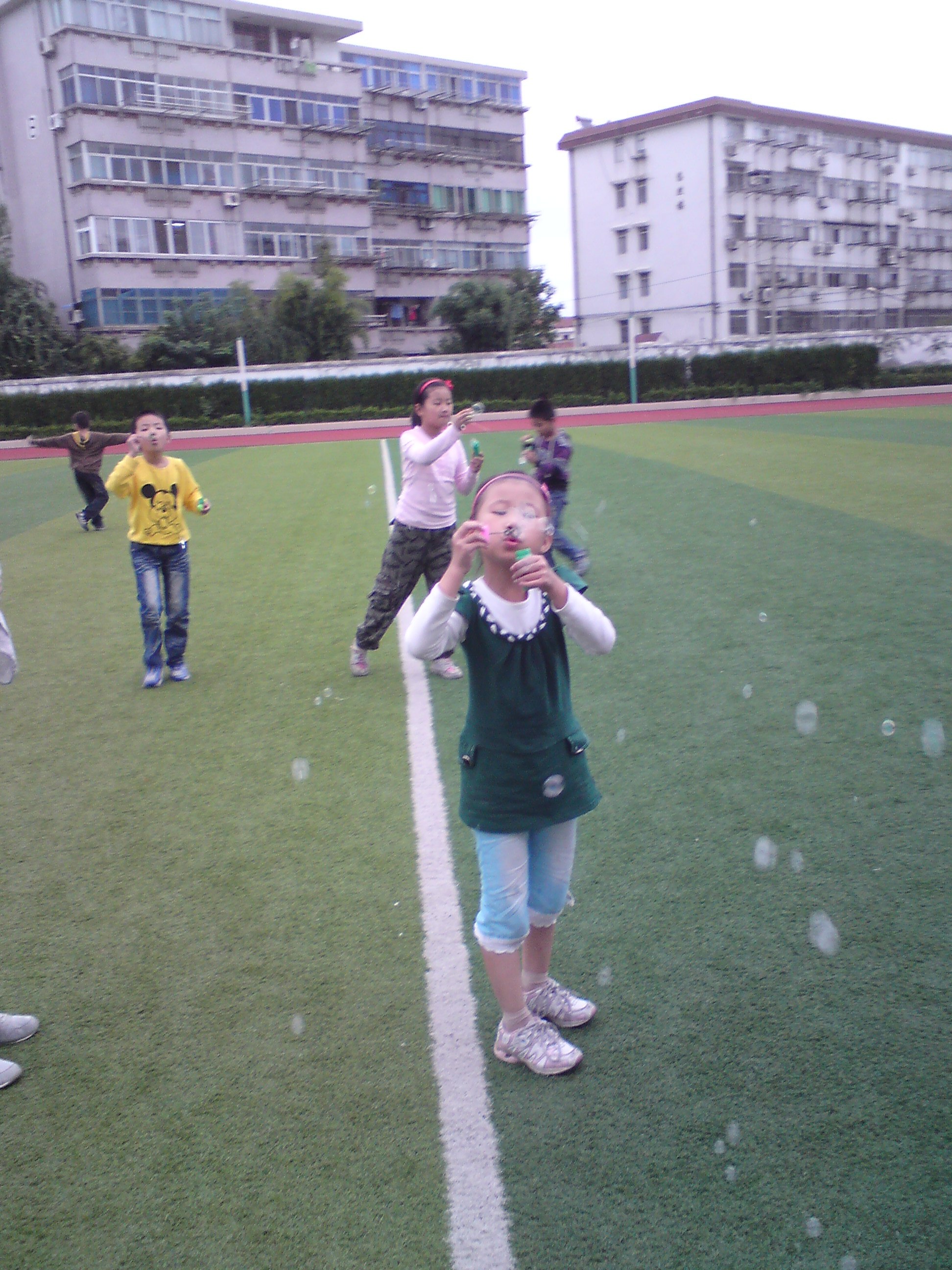 今天晚饭前利用一个小时,带孩子们去后操场吹泡泡。
