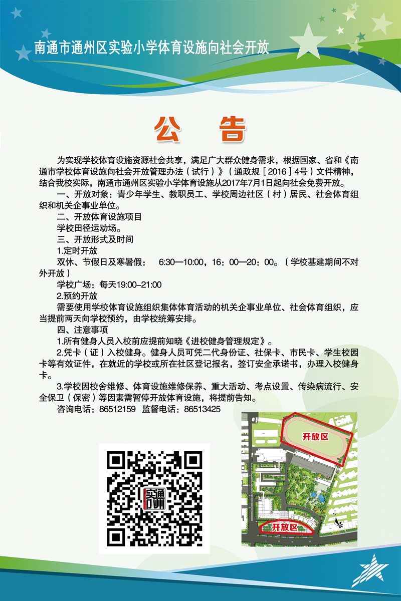 - 08-07南通市通州区实验小学体育设施向社会开放公告