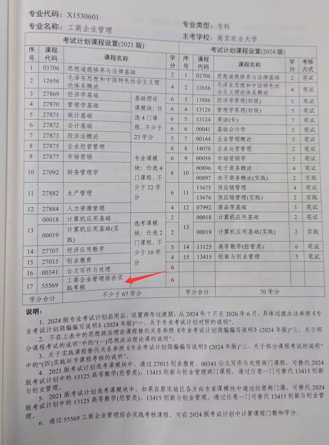工商企业管理(专科)、机电一体化技术(专科)这两个专业,若按照老计划毕业,综合实践考核可以不考。