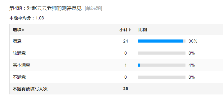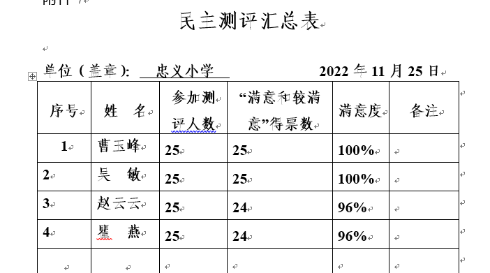 对申报市名优教师的民主测试,共有25位老师参与,符合70%教师参与的最低人数标准,4人满意度均达90%以上,特此公示!