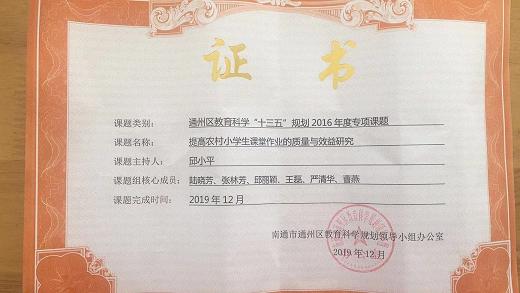 十三五规划课题“提高农村小学生课堂作业质量与效益研究”结题