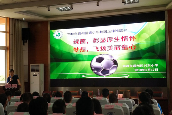 南通市教育局局长助理葛俊在会上作了讲话,他说通州区教育局召开的这次足球工作推进会议,主题突出、规模宏大,在南通市是第一次。从今天的各项工作可以看出,通州区教育局对校园足球工作是真抓,真重视,真有兴趣。并对我区各学校提出了四点建议:一要实干,要饱满的精神状态全身投入到校园工作中;二要活跃,以足球特色学校为引领,要走出去、请进来,带动整个校园足球活起来;三要联动起来;四要保障起来。最后葛俊副局长祝福通州区的足球工作越来越好,在校园足球工作中迎来足球的春天。
