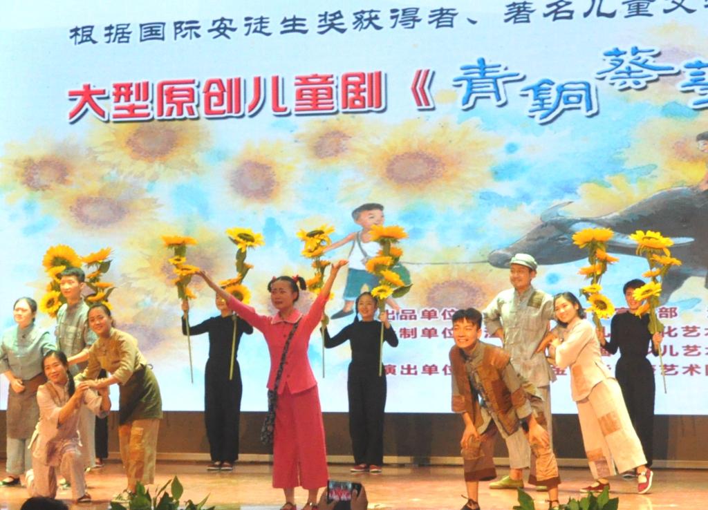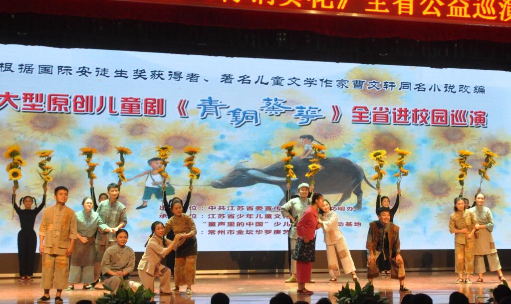 儿童剧《青铜葵花》是江苏省文明委重点推广巡演剧目,改编自著名作家曹文轩2005年创作的长篇小说《青铜蔡花》,由“童声里的中国”少儿艺术创研活动基地、省少年儿童文化促进会承制,常州市金坛华罗庚艺术团演出。该剧将在全省公益巡演240场,首站在南通启动,巡演30场。