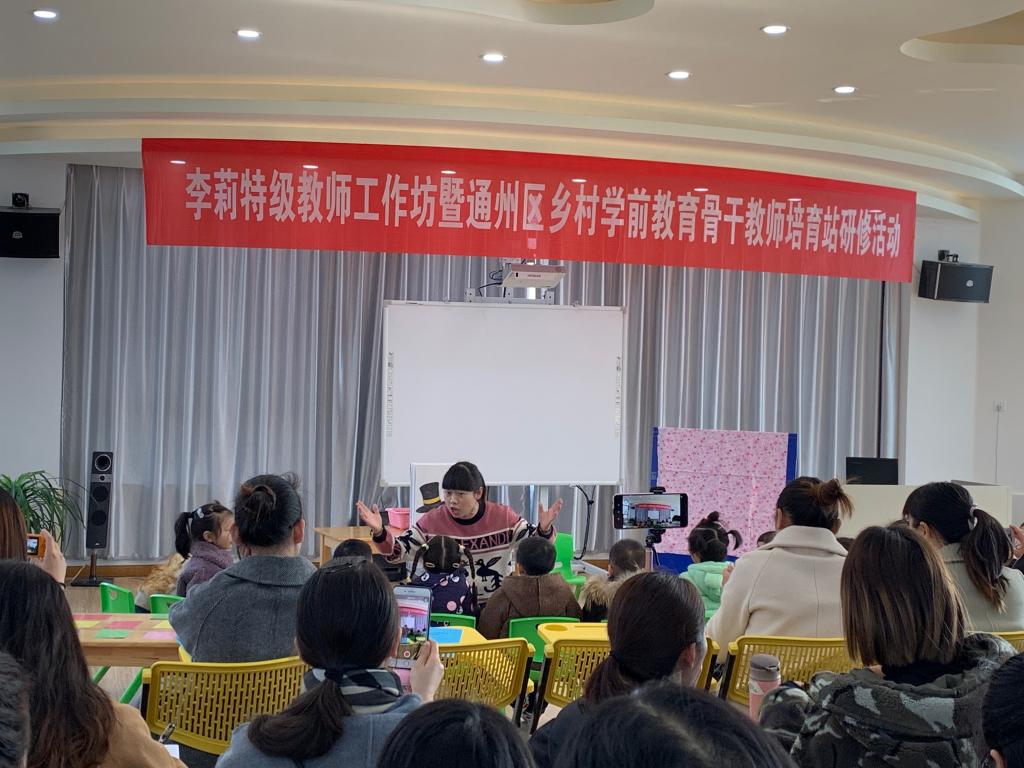 12月18日,李莉特级教师工作坊暨通州区乡村学前教育骨干教师培育站第七次研修活动在通州区先锋幼儿园举行。
