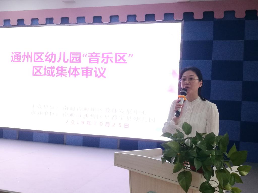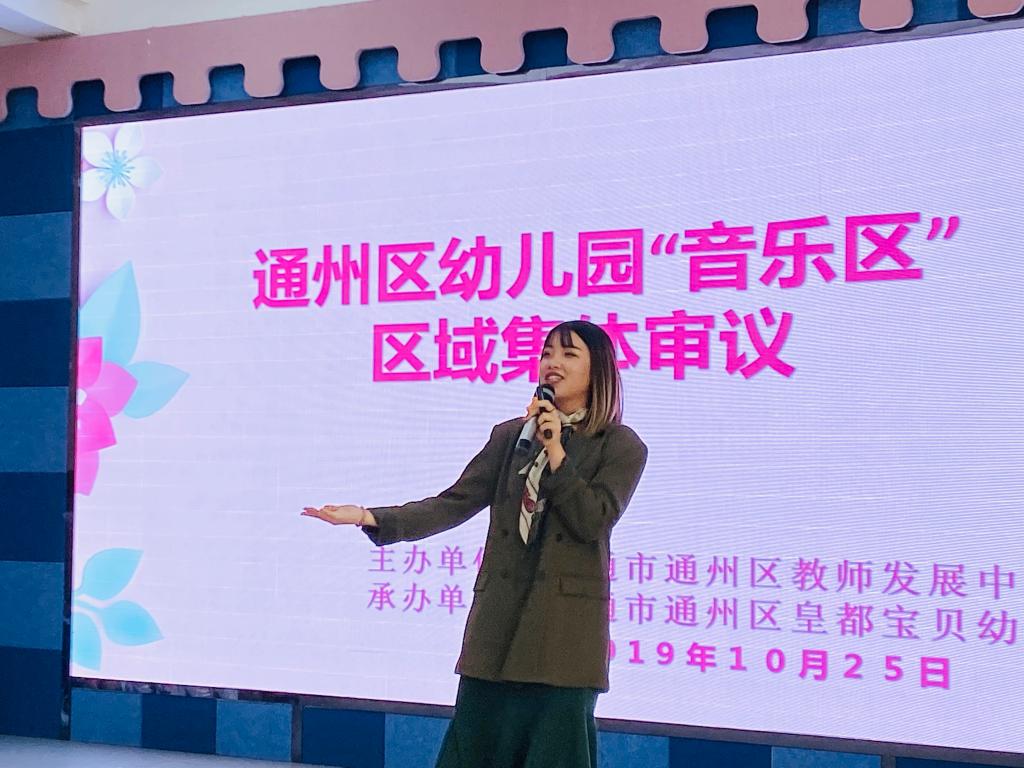 为深入贯彻学习《省教育厅关于加强学前教育教研工作的意见》,同时进一步推动区域课程建设,提升全区幼儿园课程游戏化水平。10月25日,由通州区教师发展中心主办、通州区皇都宝贝幼儿园承办的“通州区幼儿园‘音乐区’课程建设推进培训活动暨音乐中心组成员阶段研究成果展示活动”在缤纷秋日中闪亮开场。通州区教育体育局基教科幼教专干王向红、通州区教师发展中心学前教育专职研训员徐玲艳参加并指导本次活动的开展,区音乐领域兼职研训员、区音乐中心组全体成员、全区各幼儿园的教科研负责人、骨干教师等130多人参加了展示与研讨活动。