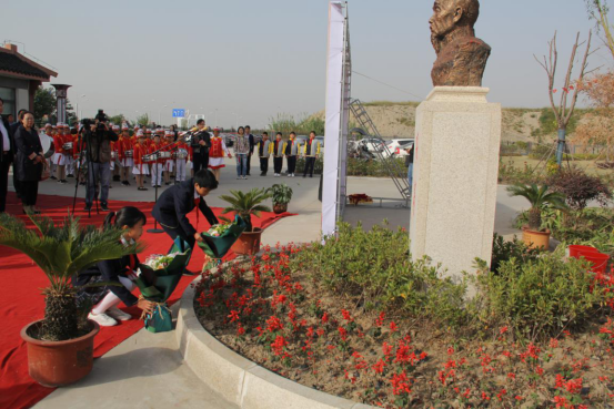 10月30日上午,庄重而朴素的张謇铜像揭像仪式在张謇学校举行。区政协副主席顾建军,区张謇研究会会长、原区政协副主席王沈康,南通高新技术产业开发区管委会副主任、金新街道党工委书记张连清,区教体局副局长葛红玲出席本次活动。张謇曾孙、省人大常委会委员张慎欣,张謇族人、苏州工业园区统战部副部长张武国及张謇研究会全体成员等莅临现场。