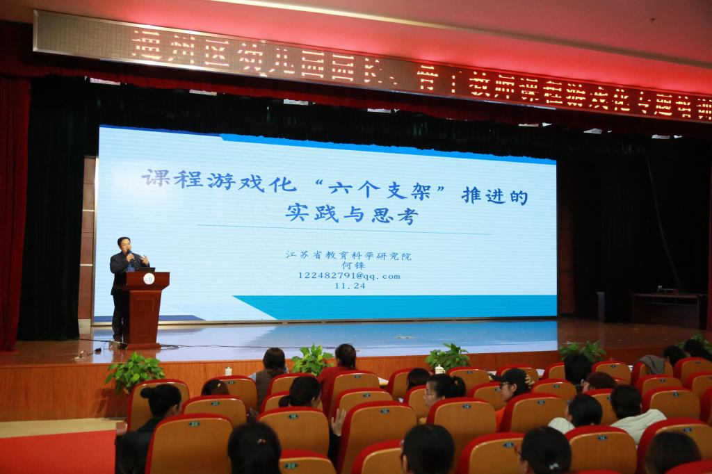 江苏省教育科学研究院幼儿教育与特殊教育研究所何锋博士作了题为《课程游戏化‘六个支架’推进的实践与思考》的专题讲座。他围绕全区在实施课程游戏化时遇到的“十大共性问题和困惑”进行了针对性的指导,在重温课程游戏化“六大支架”的同时,从“关联”的角度思考,从儿童发展的需要出发,引导老师们让实践和理论相互联系,切实推进课程游戏化。
