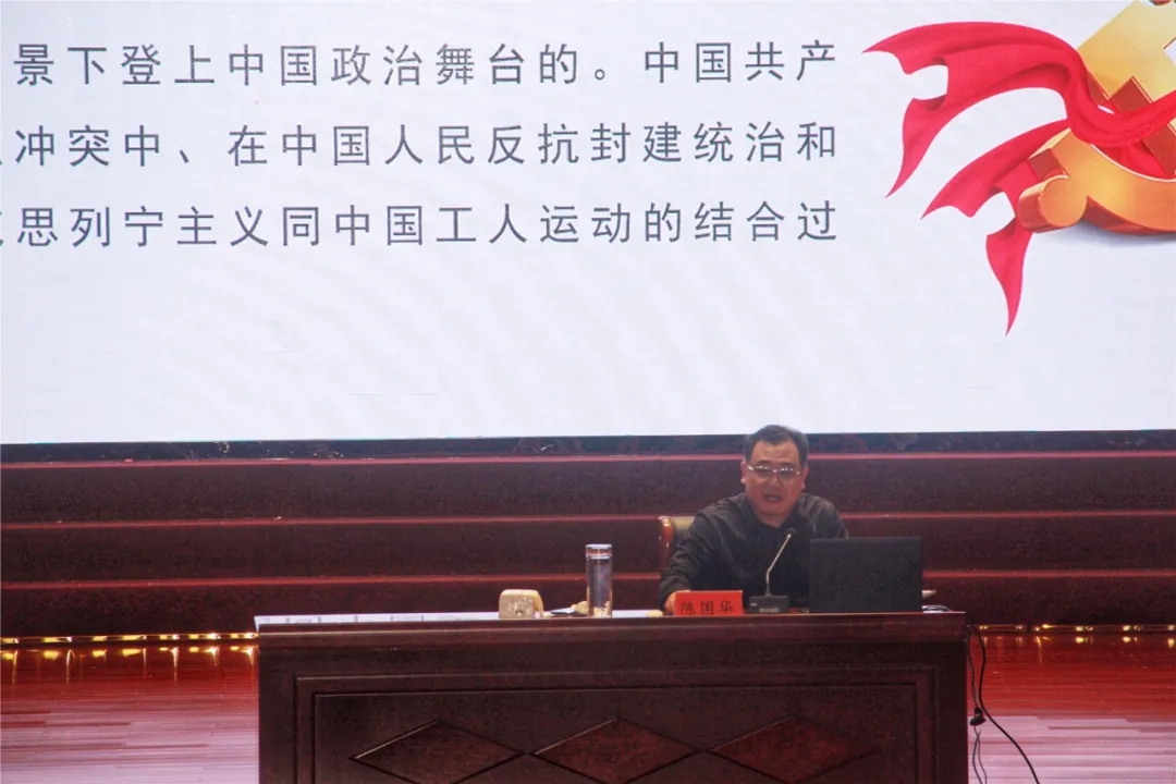 通州区委党校常务副校长、党史学习教育区委宣讲团成员陈国华同志为与会人员上了一堂精彩的党史教育课,他用生动的语言,鲜明的事例讲述了中国共产党完成救国、兴国、富国、强国大业的伟大壮举。