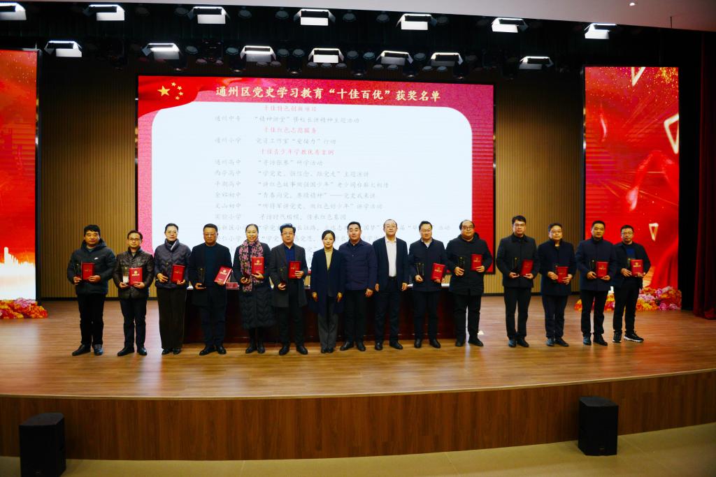 会议宣读了区教体系统党史学习教育“十佳百优”获奖名单。陈兵、丁华、薛小玉为12所获奖学校颁奖。