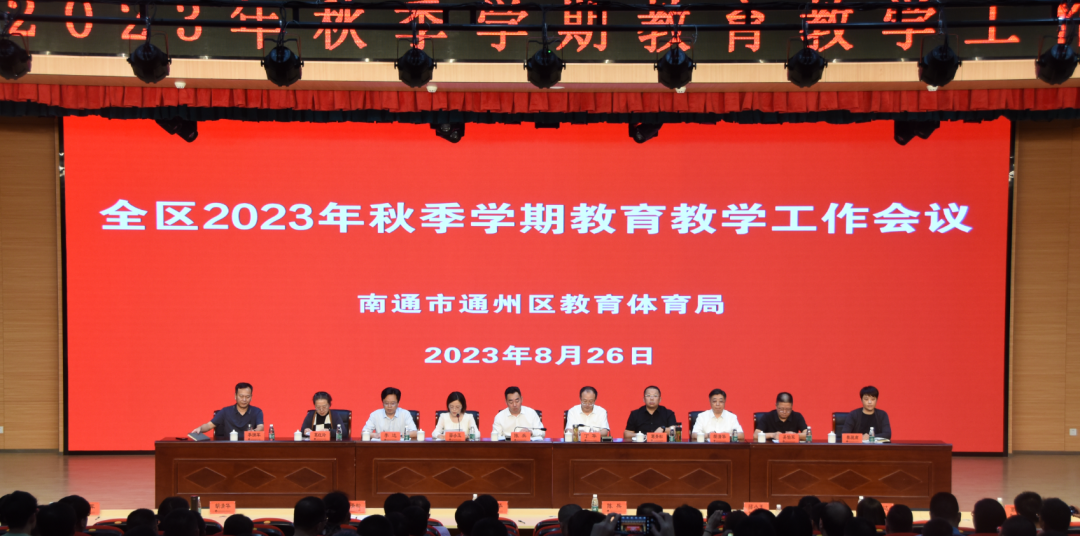 为全面贯彻落实全市中小学秋季开学工作会议精神,进一步凝聚共识,提振精神,坚定不移走好通州教育高质量发展之路,8月26日下午,全区2023年秋季学期教育教学工作会议在通州小学古沙校区召开。区政府副区长陈兵出席会议并讲话。区教体局局长室全体成员参加会议。