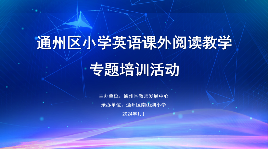 为进一步深化小学英语课堂教学改革,落实《义务教育英语课程(2022年版)》要求,推进“立学课堂”教学实践,优化小学英语阅读教学,探索课内外融合阅读的有效途径,提升学生的阅读素养,1月17日,通州区“小学英语课内外阅读教学”专题培训活动在通州区南山湖小学成功举办。