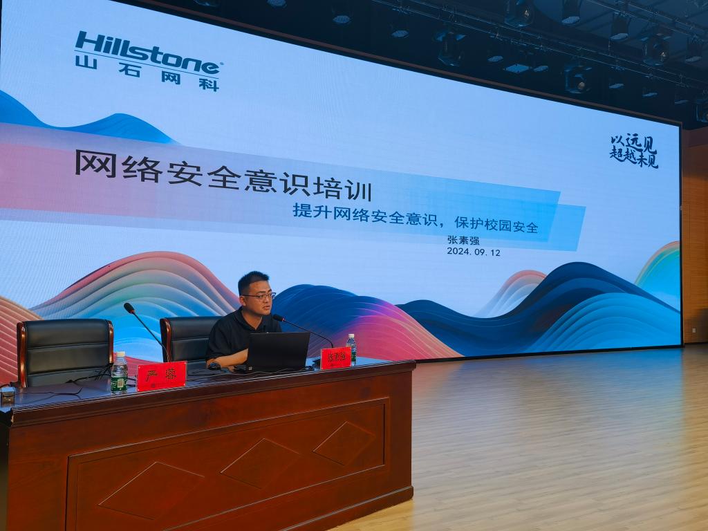 山石网科技术专家张素强从网络与信息安全态势、信息安全基础知识、信息安全意识与防范和网络攻击案例等七个方面进行网络安全专业培训。