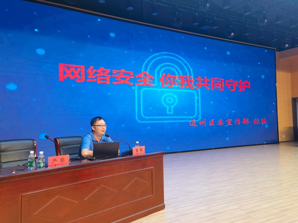 会议邀请了通州区公安局网安大队张明、区委网信办张聪、山石网科华技术专家张素强分享网络安全经验。区教育技术中心主任严蓉主持会议。