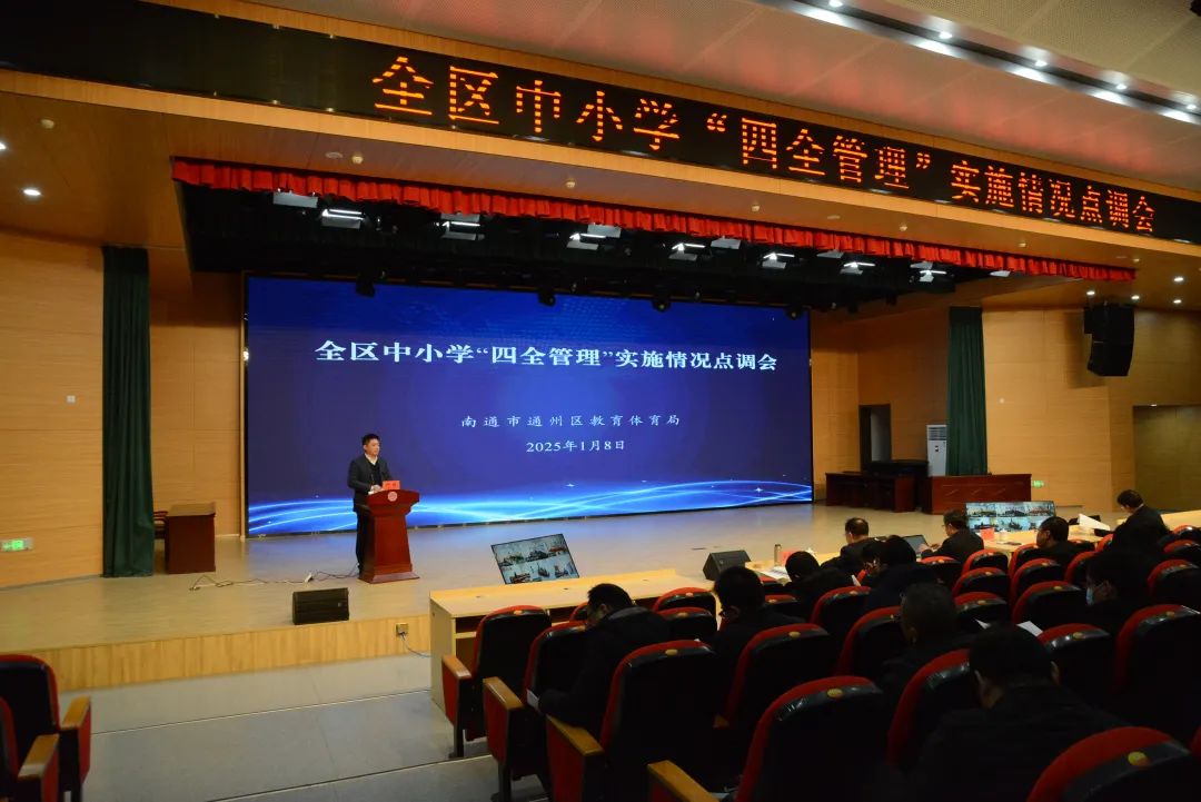 会上,通高附中、滨江学校、四安中学、新坝初中相关负责同志交流了学校“四全管理”实施情况。通州高级中学、金沙中学、育才中学、姜灶中学相关负责同志交流了寒假教育教学安排。全区中小学校长、教学副校长、德育副校长、各教育督导组组长参加会议。