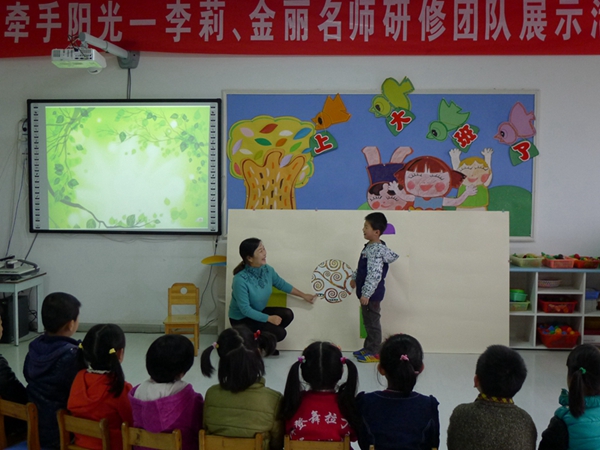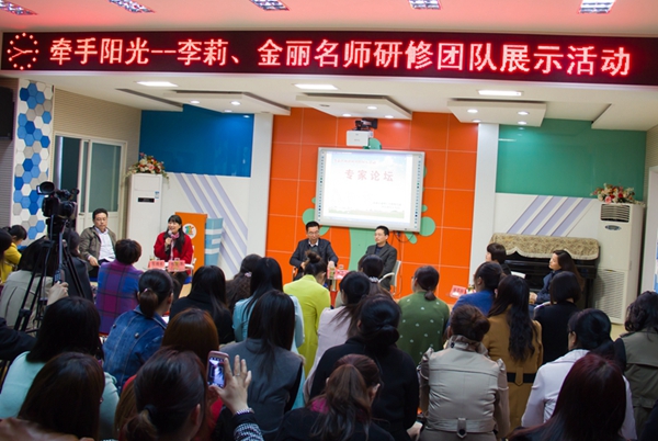 4月19日,南通市通州区李莉、金丽名师研修团队展示活动在实验幼儿园举行。 根据我区教师素质提升行动计划和教师队伍建设要求,区教育局联合实验幼儿园组织了李莉、金丽名师研修团队展示活动,旨在充分发挥实验幼儿园名师的示范、引领、辐射作用,进一步加快幼儿园骨干教师队伍建设,促进学前教育教学改革与发展。名师研修团队,作为提升师资,深化培养机制的创新举措之一,体现出了名校示范辐射、名师引领带动的强大活力,激发了教师团队成长、抱团取暖的优势。李莉、金丽均是在实验幼儿园成长起来的名师。李莉是实验幼儿园副园长,特级教师。他倡导的“幼儿情趣语言”,在全市幼教系统颇有影响。金丽是南通市学前教育学科带头人,她的“幼儿嬉乐美术”适切儿童心理特点,提升幼儿美术智能。以这两位名师为核心组建起来的两个名师研修团队为与会者提供了16堂高质量的课堂活动,涵盖了小、中、大,包括幼儿语言活动、美术活动等。