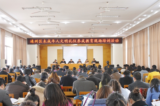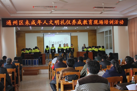 4月14日,由区文明办,教育局联合举办的“通州区未成年人文明礼仪养成教育现场培训活动”在川港小学进行。全区各学校分管德育校长、主任等180余人参加活动。