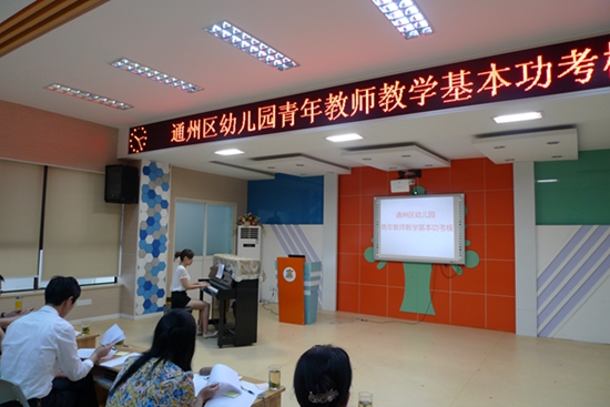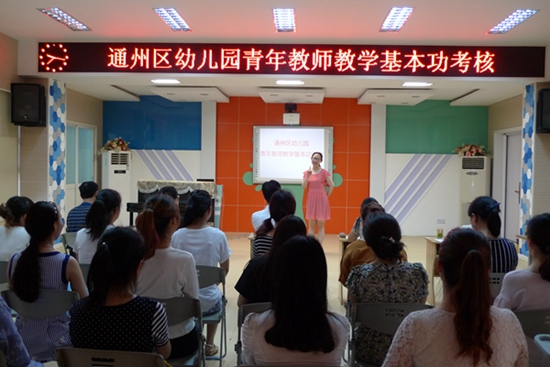为进一步提高我区幼儿园青年教师的专业素养,建设一支教学基本功扎实、综合素质较高的幼教师资队伍,根据江苏省苏教办基〔2015〕4号文件精神,6月13日至6月14日,由通州区教研室主办的2015年通州区幼儿园青年教师教学基本功展示在通州区实验幼儿园隆重举行。全区48名青年教师参加了此次活动,其中城镇组22名教师,农村组7名教师参加了基本功展示和考核。通州区教育局、教研室、少年宫等部门的有关领导、专家担任了本次大赛评委。