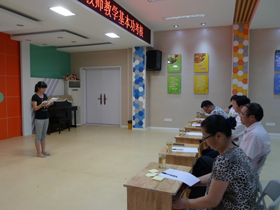 本次比赛内容包括通用技能和专业技能两部分。6月13日全体参赛教师进行了钢笔字、专业基础理论、幼儿行为观察记录与分析、绘画、教学活动设计、教学活动组织等项目的比赛,6月14日进行了讲故事、幼儿歌曲弹唱、幼儿舞蹈等项目的比赛。紧张而有序的比赛中,每位参赛教师都做了充足准备,各展所长,凸显扎实的基本功以及良好的心理素质。她们勇于展现自我,各具特色的表现给评委留下了深刻的印象,充分展示了幼儿园教师的素质和风采。