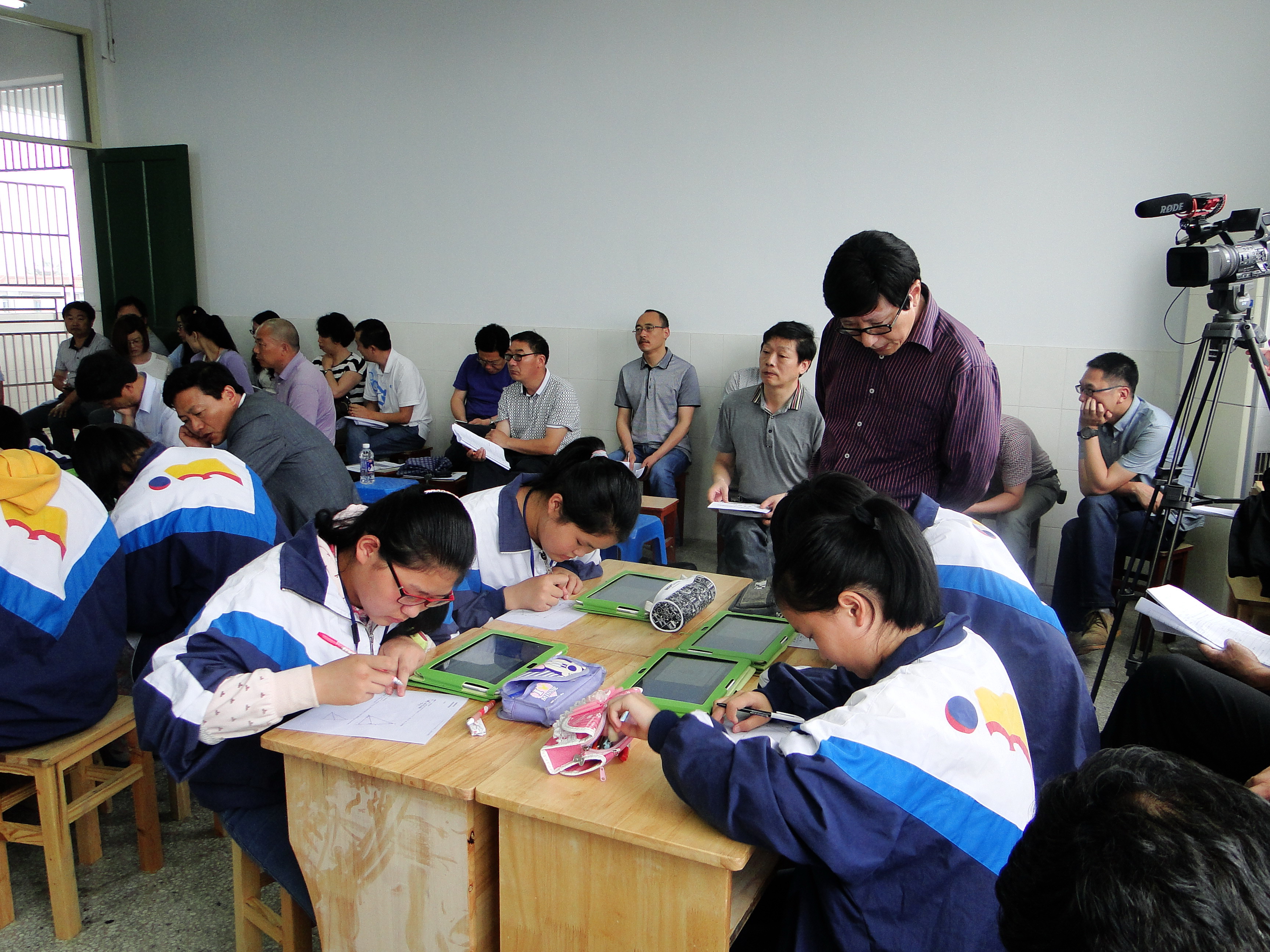 区电教中心主任朱茂松主持了此次数字化学习现场观摩活动,与会代表一起聆听了兴仁中学羌建中校长作的电子书包在学科中的有效应用情况介绍,并观摩了姚霞、严晓东二位老师分别执教的初中英语《7B(下)Unint7》、初中数学《七年级(下)三角形的复习》展示课。此次课堂教学活动都是在互联网环境下,利用数字化学习平台及其移动端软件,教师自建数字化学习资源,学生利用平板电脑登录,开展自主学习、自我检测和在线协作交流,有效促进了学生自主探究、合作学习和教师对学情的掌握。