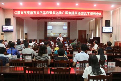 今年9月14日至20日是第18届全国推广普通话宣传周,宣传主题为“依法推广普通话,提升国家软实力”。今年是《中华人民共和国国家通用语言文字法》颁布15周年,15年来通用语言文字工作在全省取得了良好的成绩,这次的视频会议意在进一步依法推动全省的语言文字工作,提高江苏通用语言文字的应用水平。