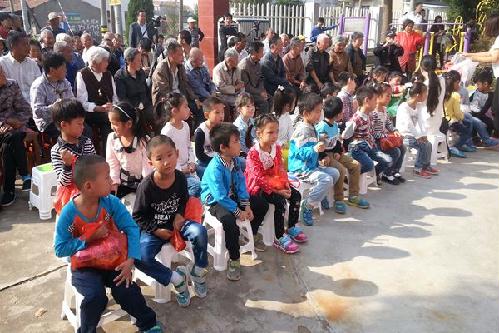 在敬老院,孩子们又唱又跳,给老人唱红歌,讲故事,精彩的表演赢得了老人们的阵阵掌声。节目的最后,还们送上了真挚的祝福,祝愿所有的老人福如东海,寿比南山,健康幸福。表演完节目,孩子们为老人送上自己的一份心意,送糖果,送饼干,还送上自己最真心的服务:擦桌子、剪指甲、梳头发、扫地……望着老人们的脸上漾起了浓浓的笑意,孩子们开心地笑了。(杨志祥)