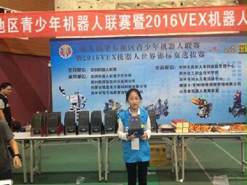 10月23日—25日,第九届华东地区青少年机器人联赛暨2016VEX机器人世界锦标赛选拔赛在常州轻工技术学院举行。通州区实验小学蕊春机器人俱乐部22位小选手勇夺机器人投篮项目冠军,并一举获得华东赛创新奖和优秀组织奖。