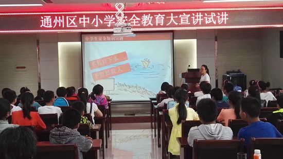 5月6日上午,通州区中小学安全教育大宣讲活动在实验小学金桥校区进行了试讲。负责教育系统宣讲的四位宣讲员、课件制作老师、相关科室人员和部分金桥校区老师参加了此次活动。