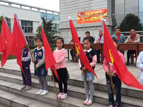 活动中,30名老少先队员代表和150余名即将入队的一年级学生在雄壮的乐曲声中举行了庄严的入队仪式。