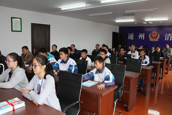10月13日上午9时,通州区教育局、消防大队在消防大队四楼会议室,联合举行中小学消防安全教育读本发放仪式。城区小学、初中、高中9所学校近40名师生代表参加。区消防大队王林伟大队长主持仪式。教育局刘新副局长讲话。通州小学代表全区中小学表态发言。