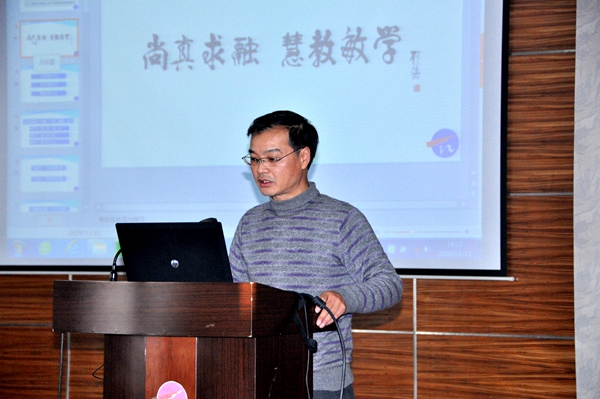 随后,六楼会议室,省特级教师、江苏“人民教育家培养对象”、教育部“国培计划”首批特聘专家、苏州大学实验学校副校长徐斌现场授课《解决问题的策略》,徐校长特有的稳健厚实的课堂教学风格将现场会推向高潮,他的精彩讲座《教育无痕与苏式课堂》激荡着与会者的教育情怀。