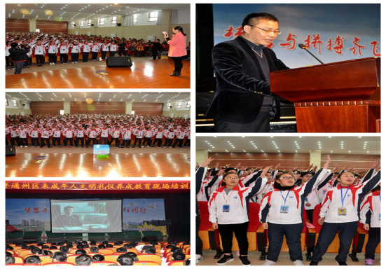 12月1日,“2016年通州区未成年人文明礼仪养成教育现场培训活动”在金郊初中听雨堂举行,来自全区各普通中小学、职业学校、特教学校、局直幼儿园分管德育的副校长和具体负责“八礼四仪”活动的政教处主任以及各教育督导组组长和分管德育工作的领导共170余人参加了活动。区文明办、区禁毒办的领导也应邀观摩了活动。