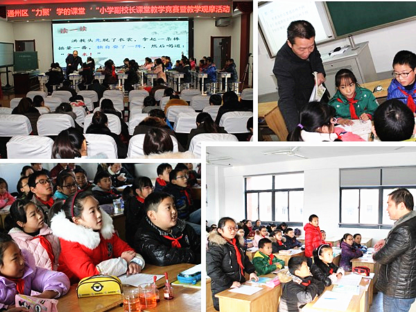 在两天时间里,来自全区各小学的44名分管教学副校长,根据自己申报的学科和年级,分成五组在金乐小学借班上课,进行现场课堂教学比赛。参赛选手们以“让学引思”为主题,以南通市课改十二字方针为主线,力聚“学的课堂”,一个个精心准备,充分展示课堂教学技艺。他们的课堂以学生为主体,抓住重点突破难点,注重师生的互动,较好地体现了我区“学的课堂”生动高效的特点,符合课改的要求。学生们认真听课,积极思考,踊跃发言,敢于探究,给上课、听课的领导和老师们留下了美好的印象。各小学来观摩比赛的老师也认真记录,填写课堂教学评价表,作为评委评分的依据之一。