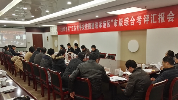 1月17日下午,南通市教育局、市综治办、市公安局等相关专家领导对我区申报“江苏省平安校园建设示范区”进行市级综合考评。
