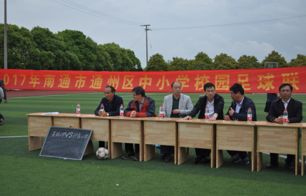 5月2日下午,2017年通州区小学组校园足球联赛决赛在姜灶小学举行,兴东小学和姜灶小学两支足球队进入决赛,区教育局局长张进荣为比赛开球。区体育局局长助理陈克、基教科虞益新老师、通南片督导组分管领导与近千名师生观看了本场决赛。