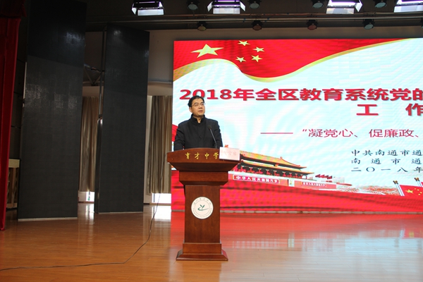 区教育局党委书记、局长张进荣到会并讲话。他指出,2017年,全区教育系统在抓实教育教学中心工作的同时,积极推进党的建设、党风廉政建设和作风建设,为事业发展保驾护航。一是大力推进党建创新,党务工作取得了新成绩。二是规范权力运行,党风廉政建设的责任体系进一步强化。三是以“精致管理校校行”活动为载体,作风建设迈上新台阶。