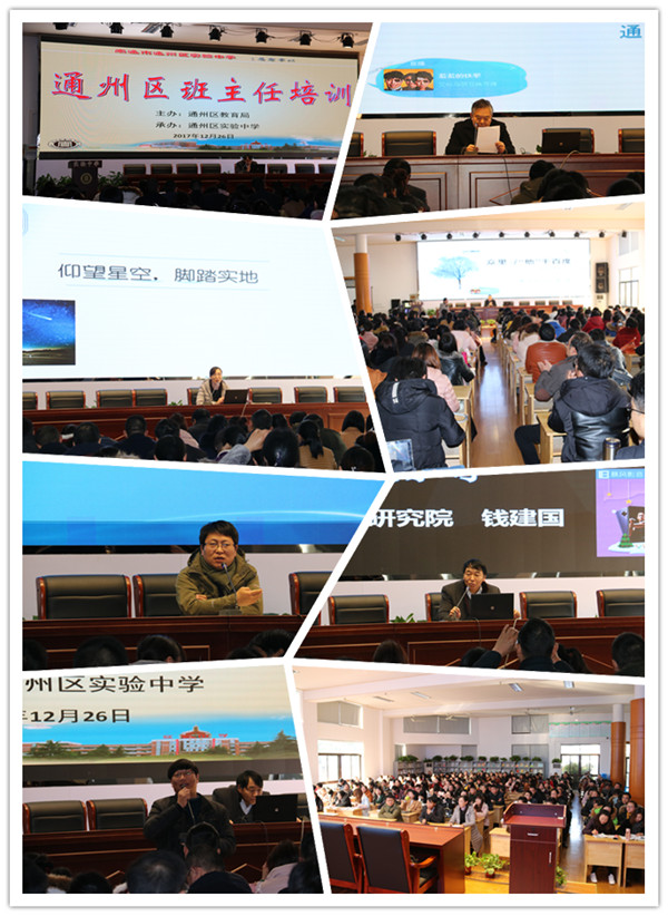 为贯彻落实党中央关于“立德树人”的要求,进一步提高通州区班主任教师的工作能力和综合素质, 12月26日,由通州区教育局主办、通州区实验中学承办的通州区中小学班主任专题培训在实验中学隆重举行。