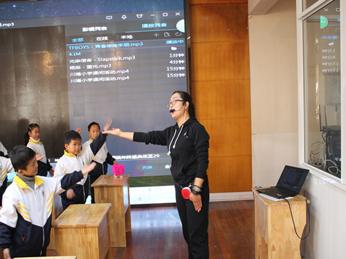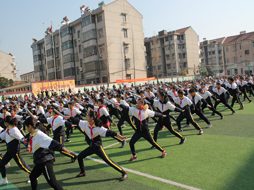 首先,川港小学校长王丽华女士致欢迎词,她介绍了学校校史与历年取得的体育成绩。接着,与会老师共同观看了实验小学王冬梅、川港小学吴燕红、顾磊磊三位老师分别执教的《室内操与游戏》及两节《队列队形与游戏》展示课。课毕,川港小学的孩子们为与会老师展示了精彩的大课间活动与足球表演。孩子们带来的特色项目的击剑操,整齐帅气富有朝气;八字跳绳、花毽、足球传球、呼啦圈游戏等形式多样,充满生机;足球花样运球,活力四射、娴熟自如,精彩的表演赢得了在场老师们的阵阵掌声。