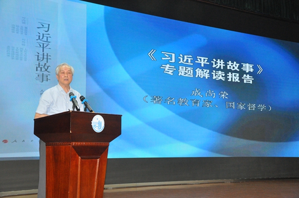 著名教育家、国家督学成尚荣应邀作了《习近平讲故事》专题解读报告,共同分享阅读体会。他说:“总书记以讲故事的方式,为我们提供了一个可以分享的世界,将治国之道、社会主义核心价值观融入故事里,展现了对百姓、对国家、对民族的深层情感。青年朋友要善于从故事里领会修身为人之智,汲取崇高信仰之力,弘扬中华民族优秀文化,做一个有故事、创造故事、向世界讲述中国故事的人。”