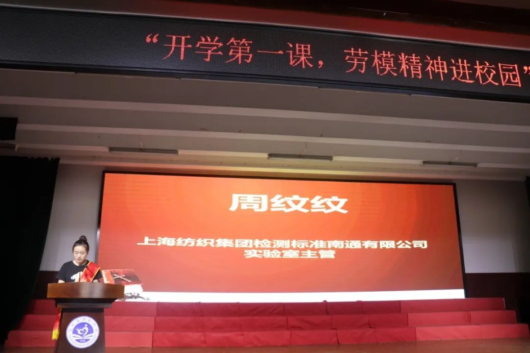 来自通州区各条战线上的陈华祥、朱安兵、周纹纹等6位劳动模范、工匠和技能选手身披红绶带、胸佩奖章,在全场热烈掌声中走上主席台,与师生们分享他们在各自岗位上爱岗敬业、争创一流的创新历程,分享他们淡泊名利、甘于奉献的闪光亮点,分享他们在疫情防控和复工复产中的模范事迹。全国劳模、全国创新能手陈华祥将全国劳动模范的奖章和由中共中央、国务院颁发的全国劳动模范证书带到会场,与同学们进行分享,讲述了自己先后获得多项荣誉称号时激动的情景,全场多次以长时间热烈的掌声向他祝贺。初一年级学生代表徐宝尔同学说:“全国劳模陈华祥攻克技术难关的事迹,给他留下非常深刻的印象。我们现在不但要好好学习,还要培养自己热爱劳动的良好习惯。”兴仁中学校长陈春雷发言时说:“劳模走进校园,尤其是在秋季开学的典礼上分享劳模事迹,让‘劳模精神’在同学们心中生根发芽,功在当今,利在终身,意义重大。”区总工会副主席徐浩兵指出:“开学第一课,劳模精神进校园活动是劳模事迹宣传的创新。我们将进行总结,不断创新、完善、推广这一宣传形式,让劳模精神在通州大地生根、开花、结果,让更多人优秀职工走进劳模行列。”