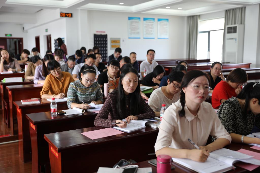 中秋时节,秋风送爽,丹桂飘香。9月29日,南通市第五期乡村初中语文骨干教师培育开班典礼暨第一次集中研修活动在育才中学举行,南通市中小学名师培养导师团副团长、省语文特级教师郭志明,南通市初中语文教研员、省语文特级教师李凤,通州区教体局副局长钱国华、人事科科长邢霞、育才中学校长张建等出席了开班典礼,来自如皋、海安、如东、海门、启东和通州等南通六县市区乡村初中的培育站成员,丁卫军名师工作室成员以及育才中学语文组全体教师全程参加了活动。