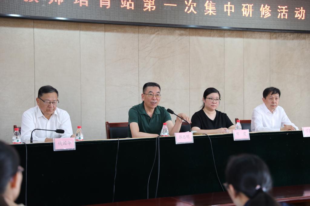 培育站导师郭志明老师在致辞中要求全体学员一要自励,“不用扬鞭自奋蹄”,要有强烈的成为优秀教师的内驱力;二要尽责,在培育站这个平台要有强烈的竞争意识,发展自己的竞争力,并脱颖而出;三是要对标,要经常地对照标准往前走,提升自己的政治素养和业务素养。