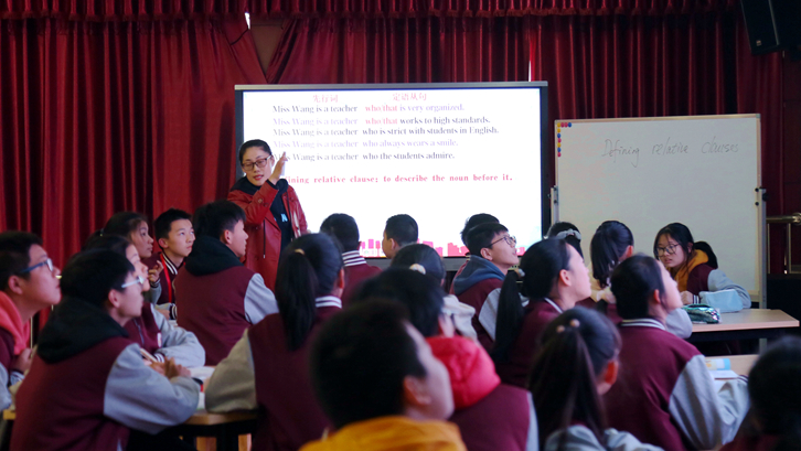 来自育才中学的王裕美老师执教《语法复习课(定义从句)》,以学生熟悉的人和事做为话题,以话题讨论为主线,让学生们在语言实践中学会定义从句的用法,在自我归纳总结中构建知识结构,在深度思考中培养高阶思维的能力。学生们积极参与,脸上洋溢着收获的喜悦。