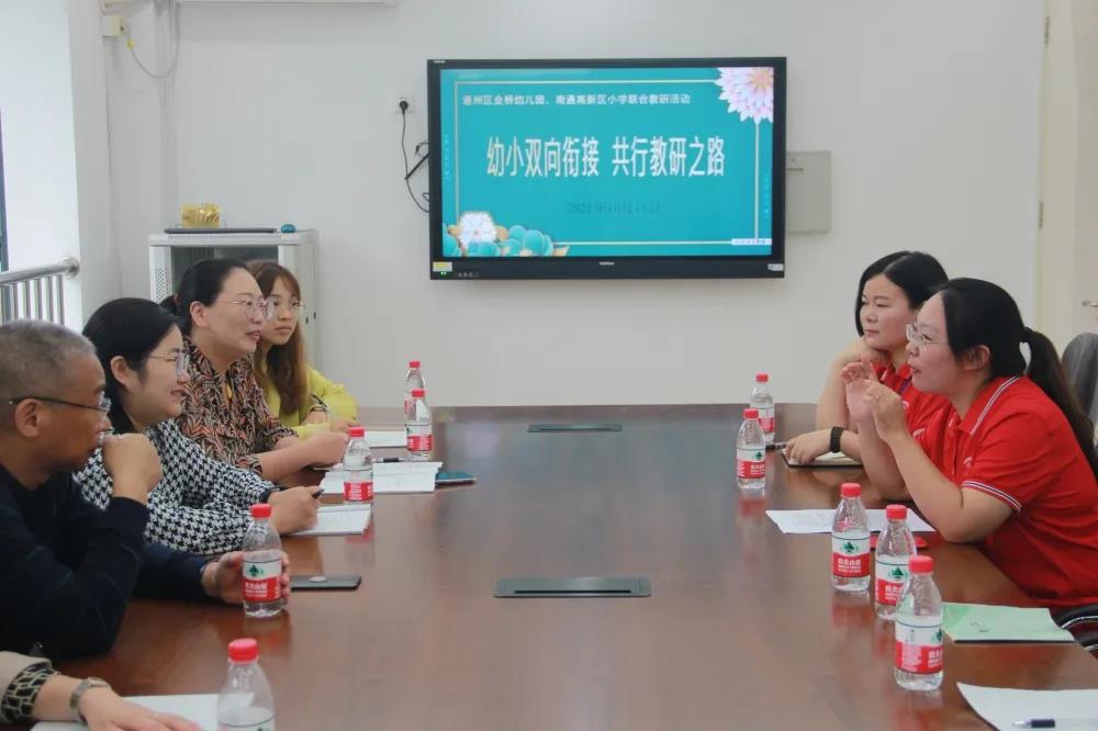 高新区小学老师和金桥幼儿园老师齐聚会议室展开研讨。大家通过面对面的交流,分析和寻找幼小衔接的关键点、聚焦点,探讨新方法,打开新局面,实现两个学段在幼小衔接方面的“双向奔赴”,为幼儿顺利进入小学做好准备。