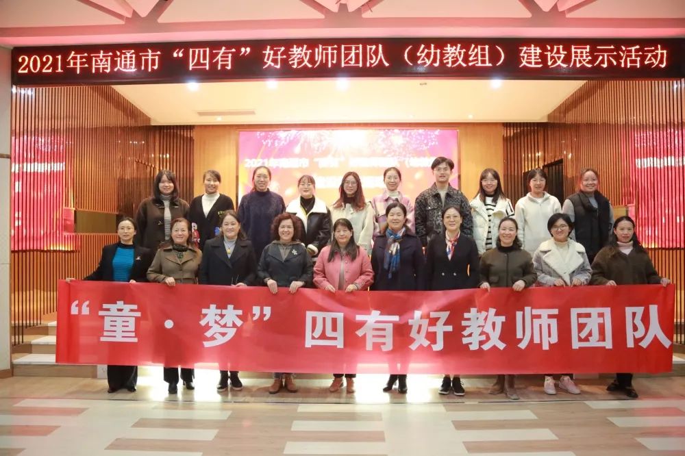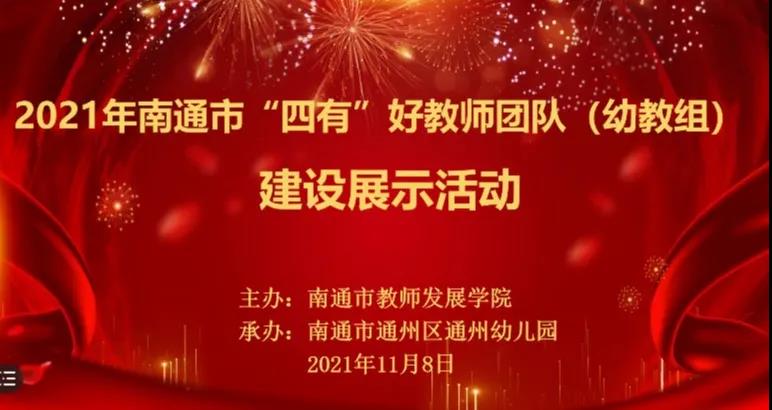 11月8日下午,南通市教师发展学院举办 2021年南通市“四有”好教师团队 (幼教组)建设线上展示活动。在通州幼儿园报告厅设立了分会场,江苏省教育厅基教处副处长、通州区政府副区长殷雅竹,南通市教育科学研究院研究员陈爱萍、通州区教师发展中心幼教教研员徐玲艳、省级重点培育项目——“童·梦”四有好教师团队领衔人张宏云及其团队成员共计40余人在分会场参加了本次活动。