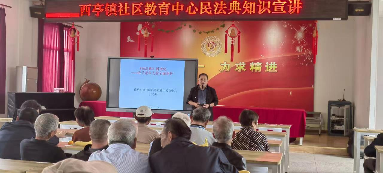 9月25日,西亭社教中心主任于其勇来到西亭初中,为该校老同志作了题为《民法典与老年人生活》的专题讲座。