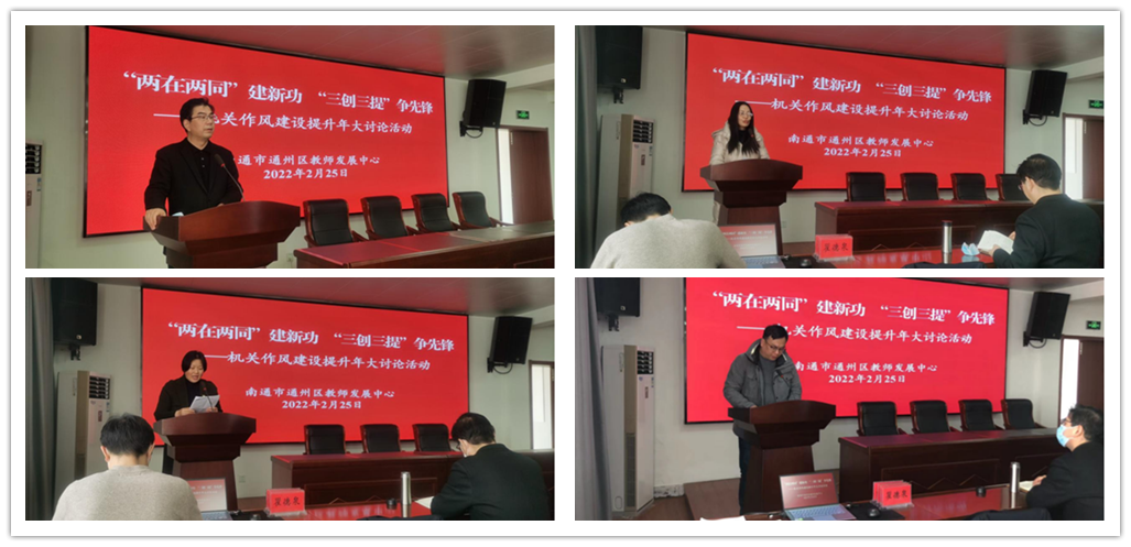 225日下午,区教师发展中心开展“‘两在两同’建新功,‘三创三提’争先锋”机关作风建设第二次大讨论活动,中心全体人员参加会议。吴丽华、昝淑华、王峰三位研训员紧扣主题,结合年度研训工作查摆不足,明确改进方向。葛建华、吴国成、瞿德泉三位支委分别进行点评。中心党支部书记、主任陈汉兵作总结讲话,他要求各位研训员要通过“大讨论”活动,充分认识到加强作风建设的重要意义和本质要求,凝心聚力,把作风建设成果转化为研训工作高质量发展的思想共识和强大动力。(区教师发展中心办公室)