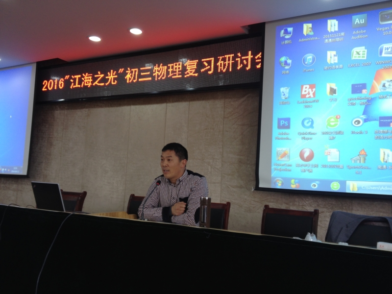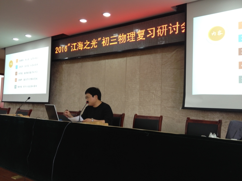 2016年5月4日上午,通州区2016届江海之光初三物理复习研讨教学培训活动在通州区育才中学举行。来自全区27所初中的一百多名初三物理老师参加了研讨培训活动。