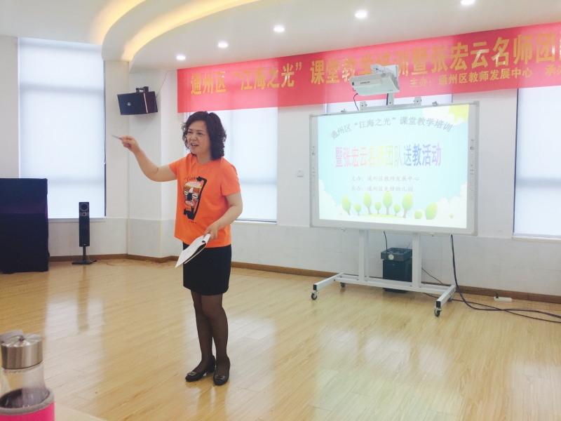 五月槐花开,风吹阵阵香。5月23日,由通州区教师发展中心主办、通州区先锋幼儿园承办的通州区“江海之光”课堂教学培训暨张宏云特级教师团队送教活动在通州区先锋幼儿园展开。省特级教师、正高级教师、通州幼儿园园长张宏云带领她的名师团队来到美丽的先锋幼儿园,区教育局基教科幼教干部王向红、区教师发展中心专职研训员徐玲艳以及兼职教研员张艳梅、胡霞莅临活动现场,组成了一支强劲的专家指导团队。通南片各幼儿园近60名骨干教师共同参与了本次活动。
