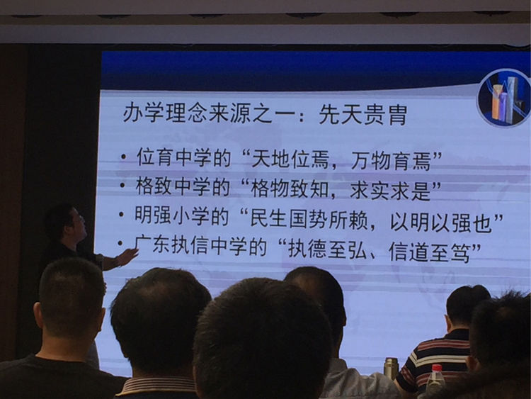 第三部分是办学理念体系的梳理,王教授认为梳理办学理念体系最核心的就是学校哲学(办学理念)的问题,办学理念有三个标准:规约的是学校组织内的所有人,超时代性、超地域性。接着,王教授以这三个标准介绍了华东师范大学的办学理念(智慧的创获、品性的陶熔、民族和社会的发展,Creativity,Character,Community),还以具体案例的方式介绍了办学理念的四大出处(先天贵胄、望文生义、历史积淀、校长品牌)。