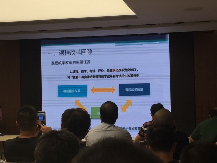 第一部分是课程改革回顾,沈校长介绍了上海市课程改革经历的四个阶段、上海市提升中小学课程领导领导力行动研究、上海基础教育"十三五"重大改革项目一览。